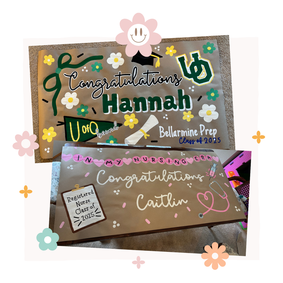 It is a big deal to graduate and you deserve to be celebrated! A custom banner is the perfect backdrop for your party andI would love to help create something that truly show's off you and this wonderful achievement!
