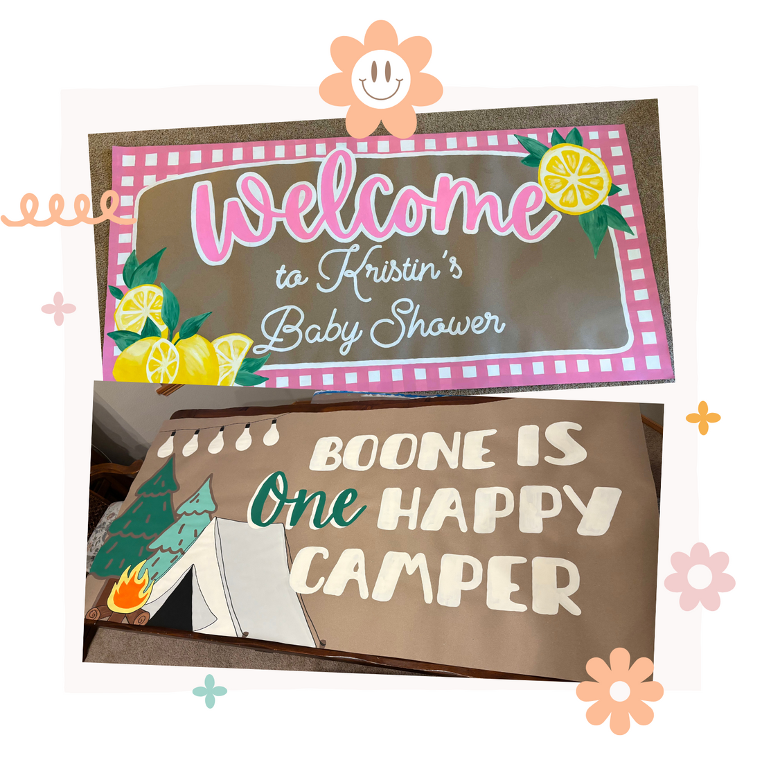 Welcoming a little one into the world is one of the best experiences a Mom can have, adding a custom banner can really make take the event from generic to personal!